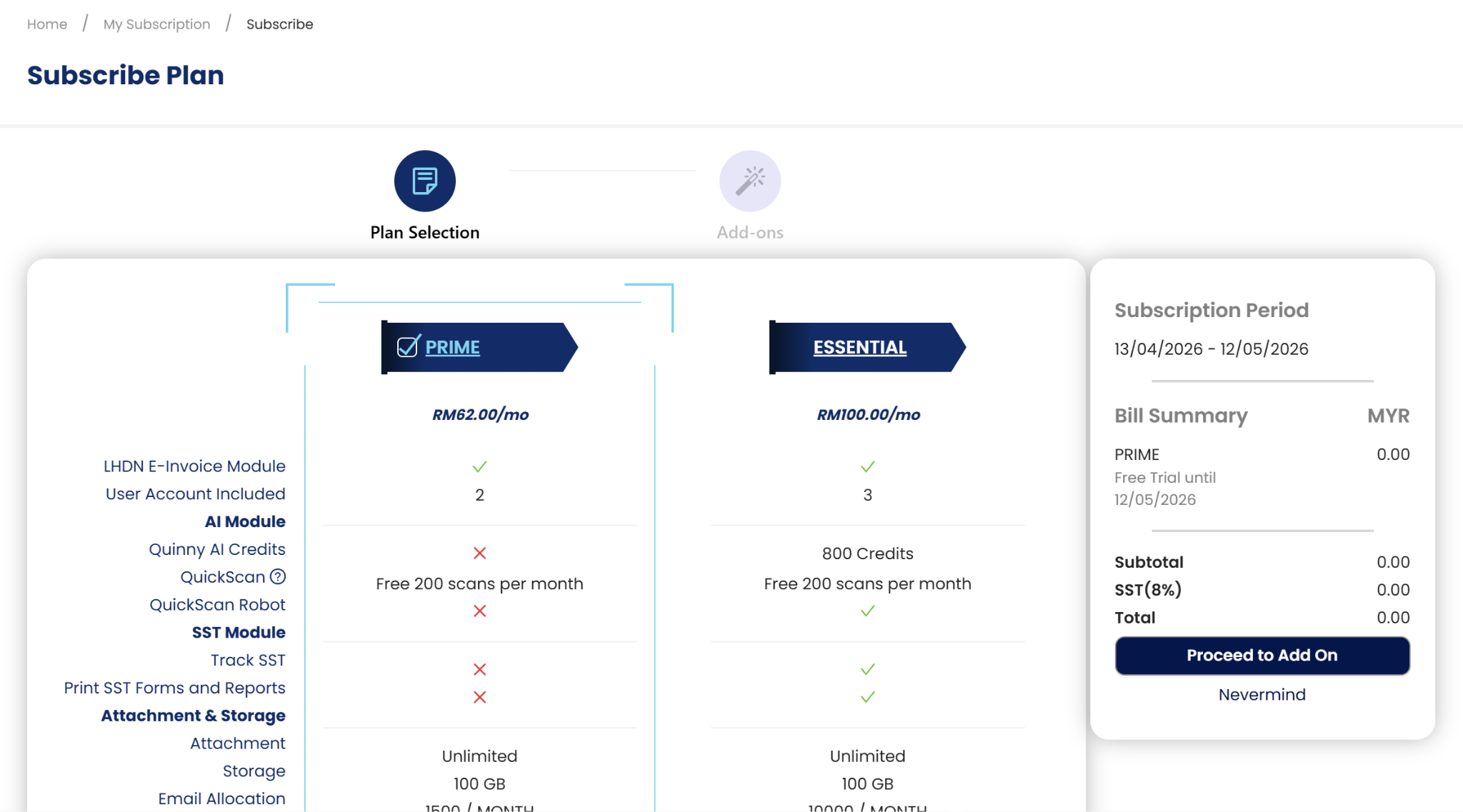 Click 'Choose Plan!' to select a subscription that best fits your accounting needs and unlock premium features.