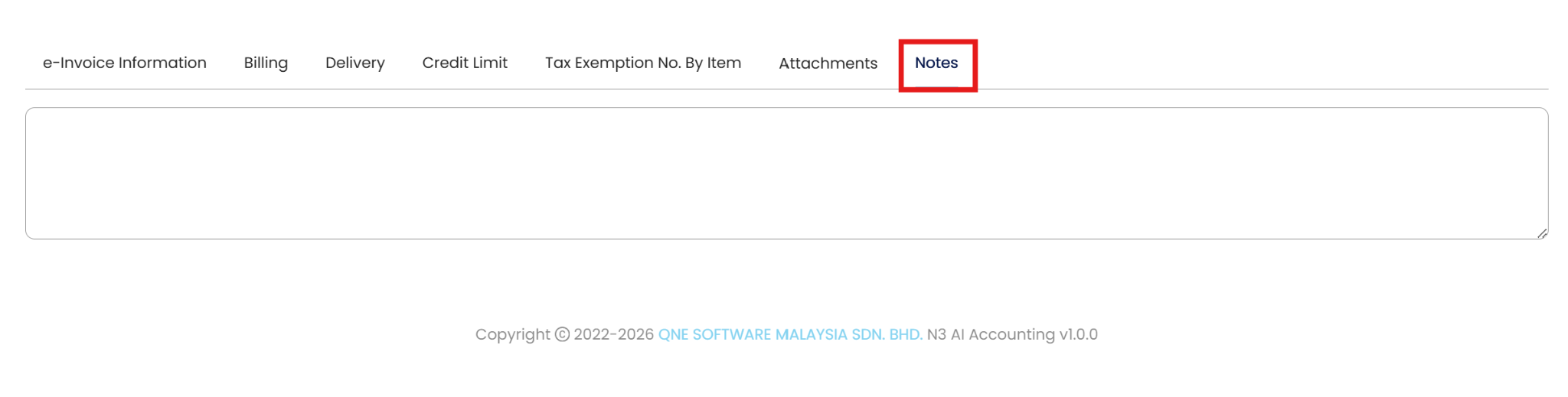 Input any remarks in regards of the customer accounts under the Note tab.