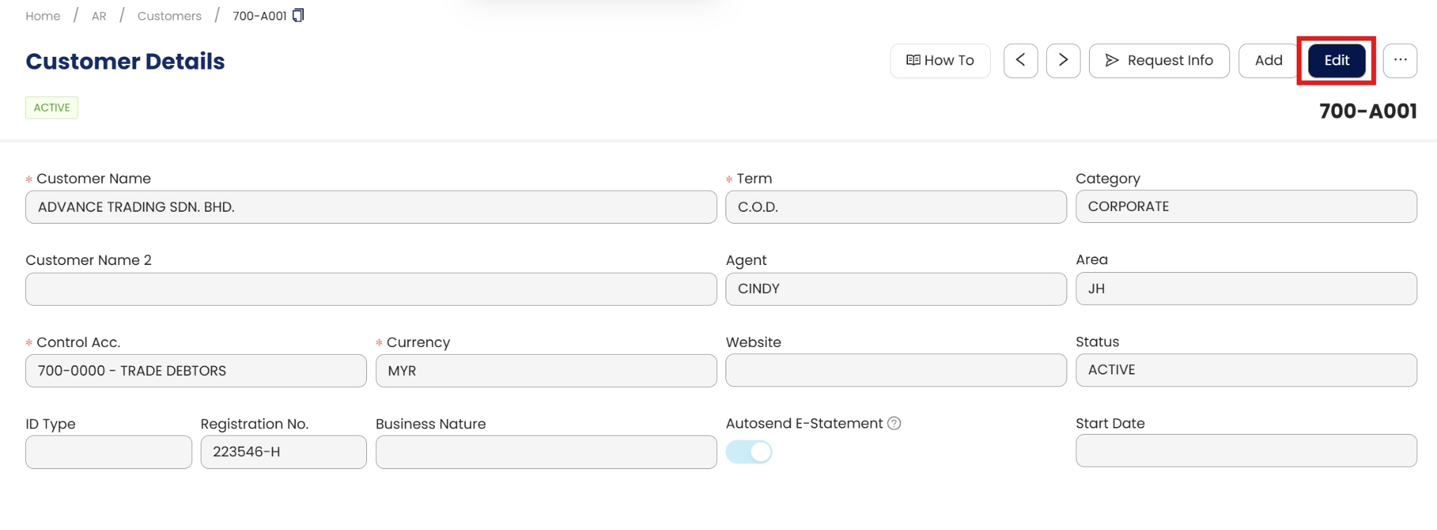 To Edit the customer’s details, simply click on the Edit button in Customer Details View.