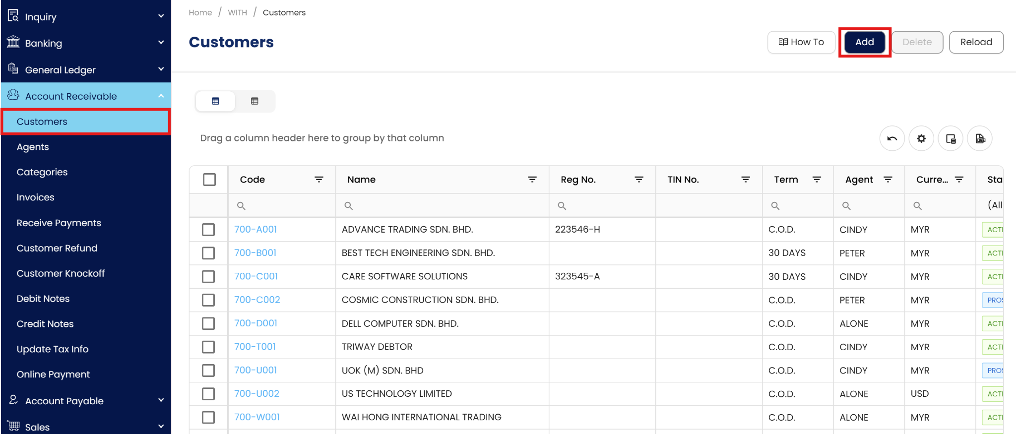 Click ‘Add’ button to add a new customer record.