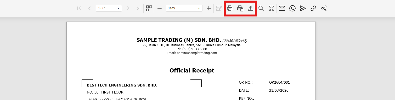 Proceed to perform your desired action whether to print the report or export it to a different file format.