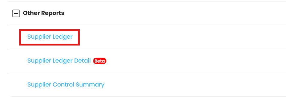 Under the same Supplier Reports Menu, expand Other Reports and select Supplier Ledger.