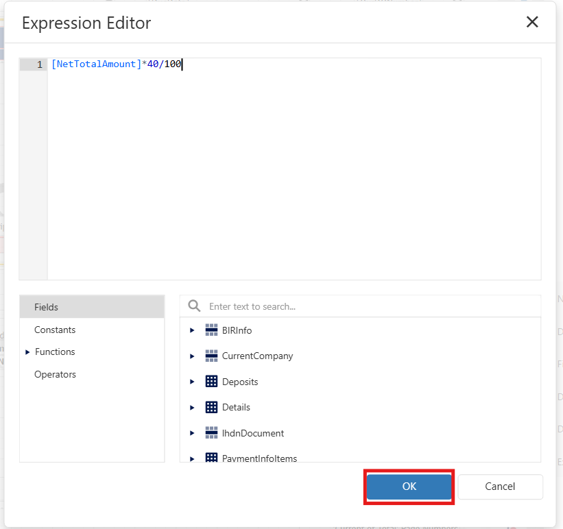 Note, User can copy expression from here : [NetTotalAmount]*40/100