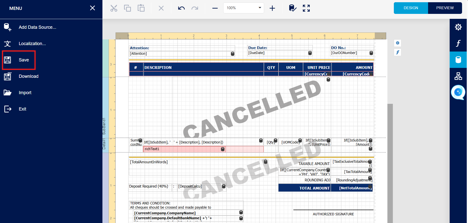 Step 3 - Then Press Edit, Report Designer will Drop down Edit Info.