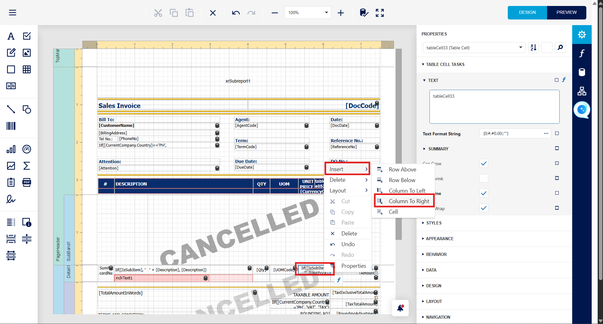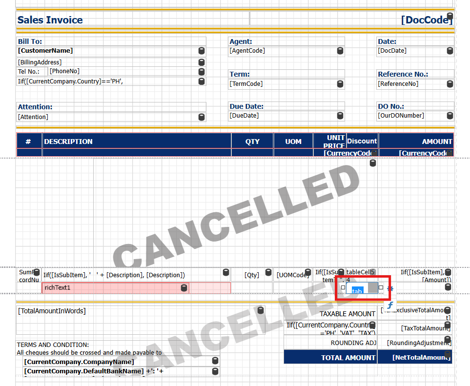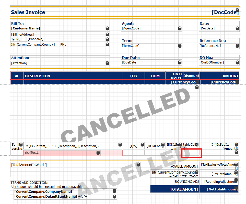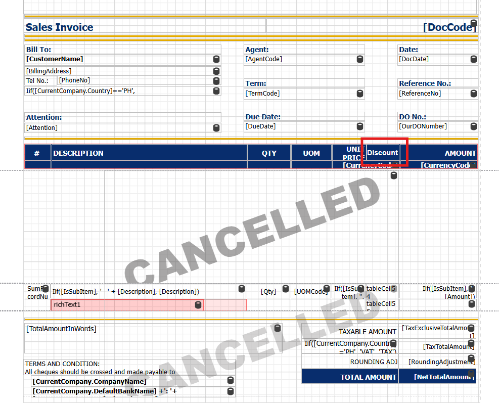 Step 5 - Then can double click into the Table Cell of Column Header, replace to Discount Wording