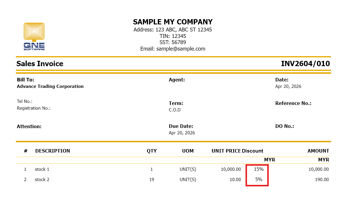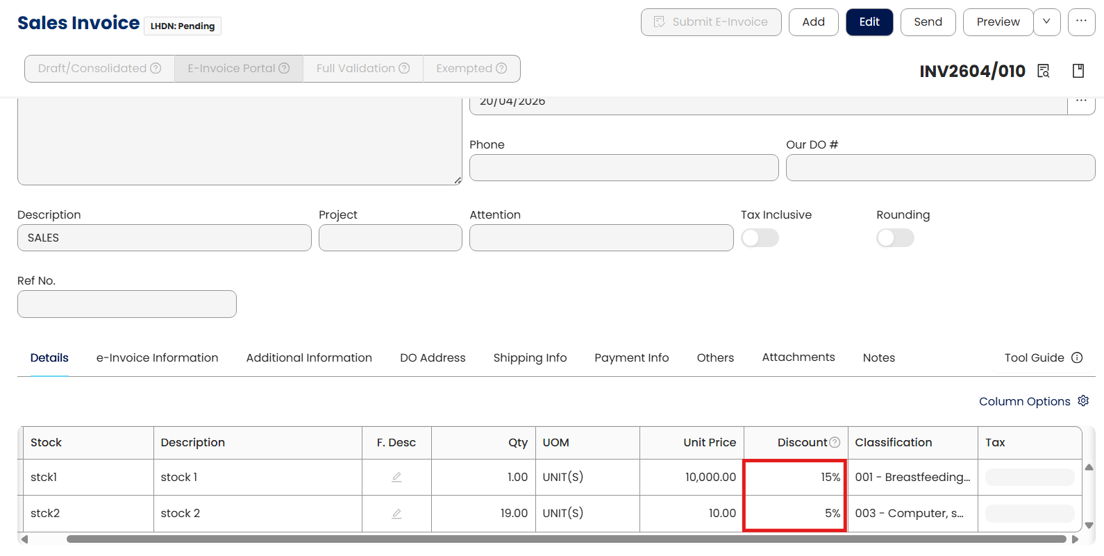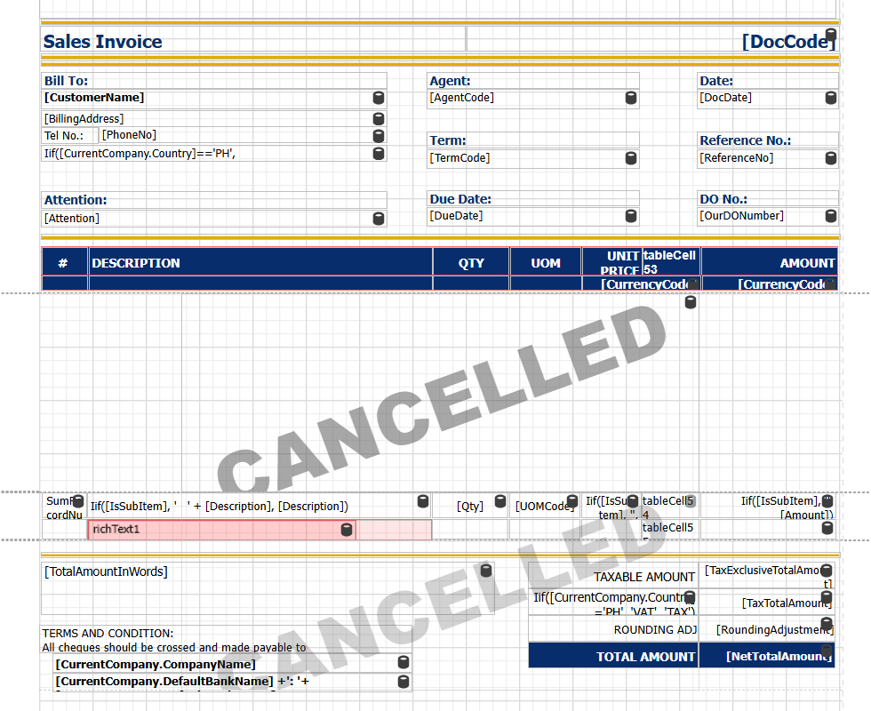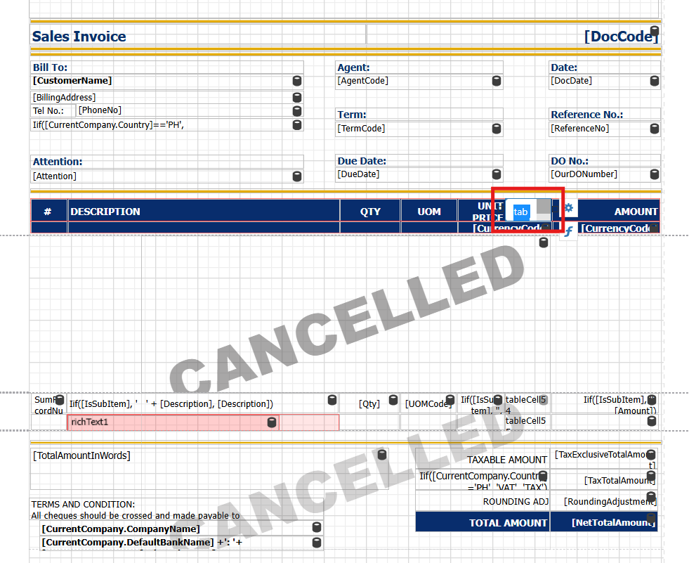 Step 5 - Then can double click into the Table Cell of Column Header, replace to Discount Wording