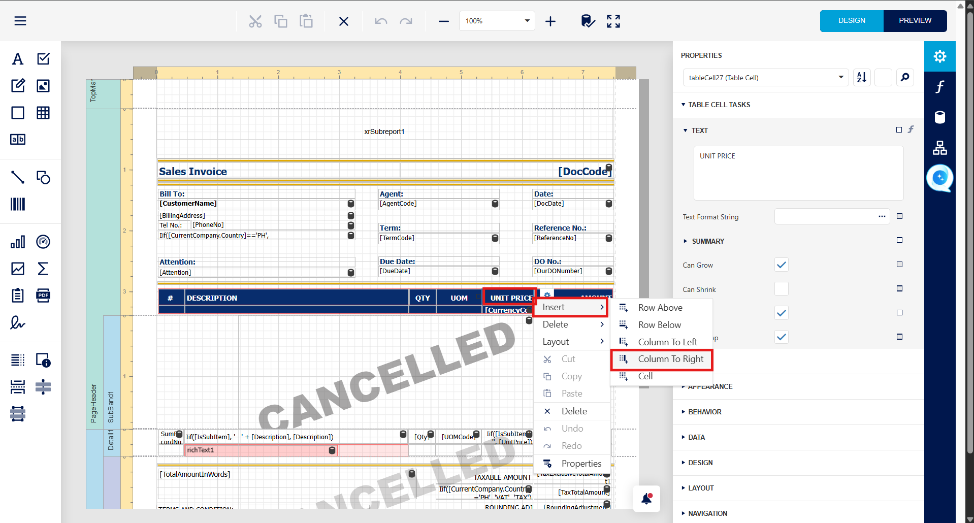 Step 3 - Proceed same as step 2, Press 'Unit Price Field' > then Press add Column to Right.