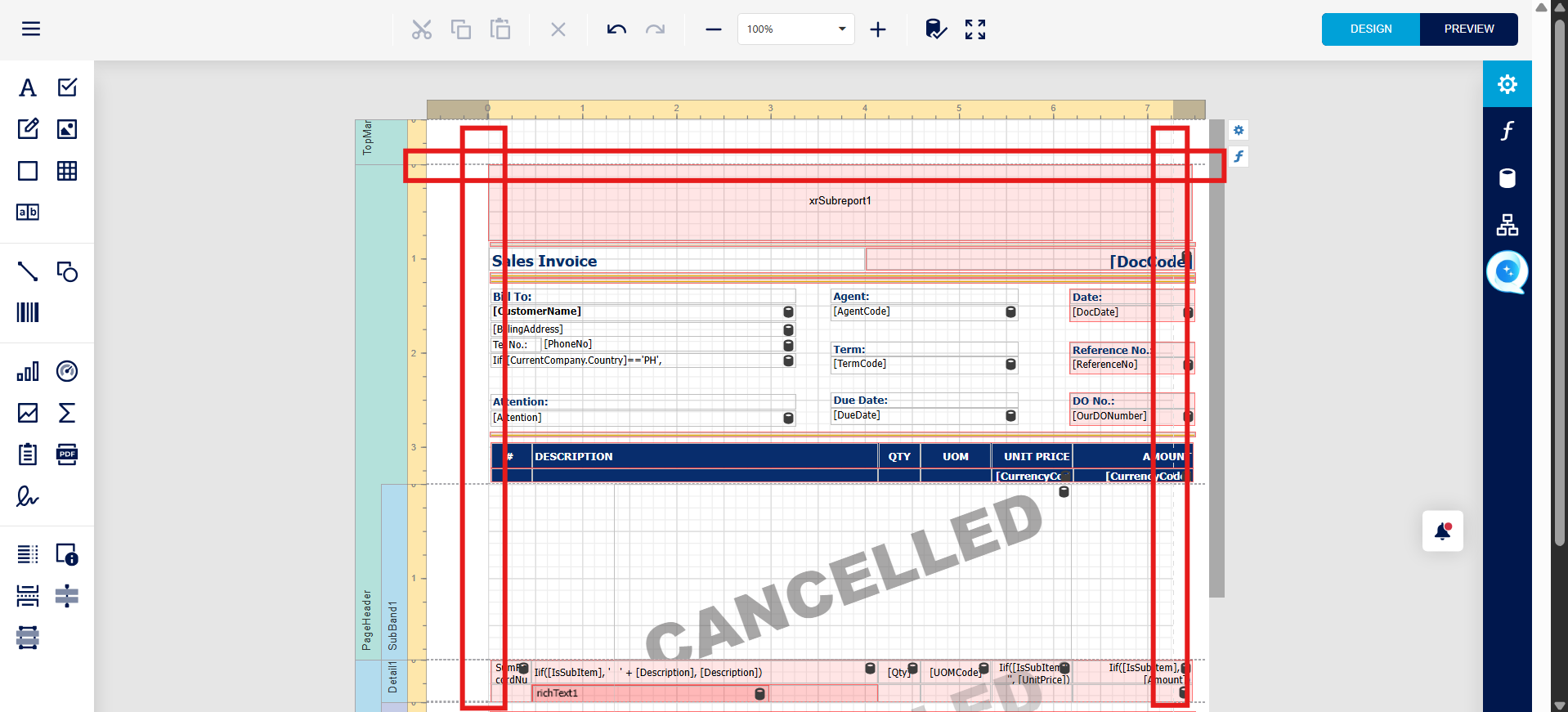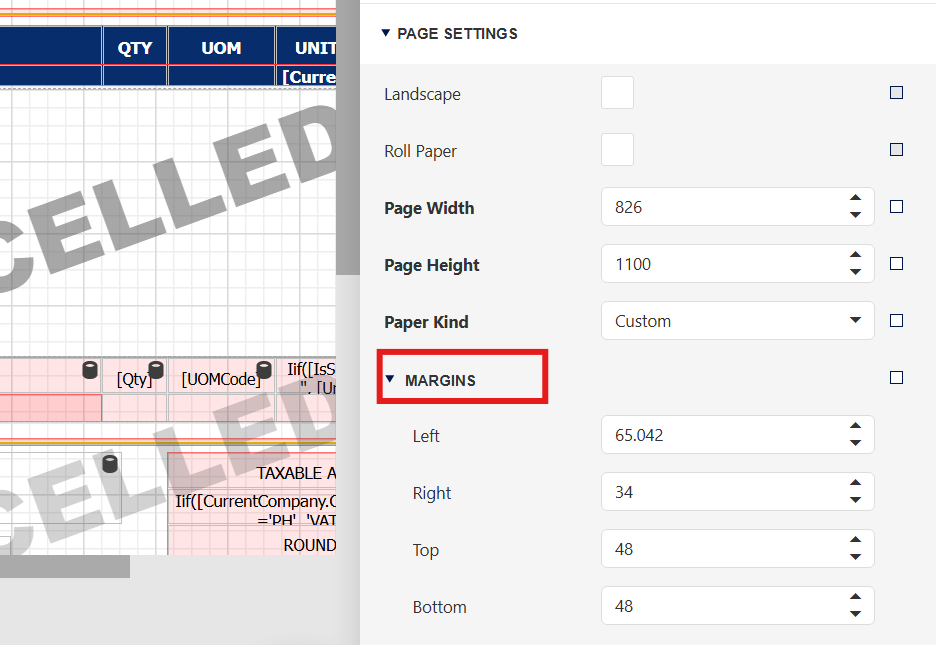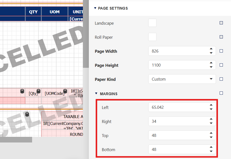 If you adjust the margins for the left, top, and right by using mouse movement, some details on the right-hand side will be cut off by the system.