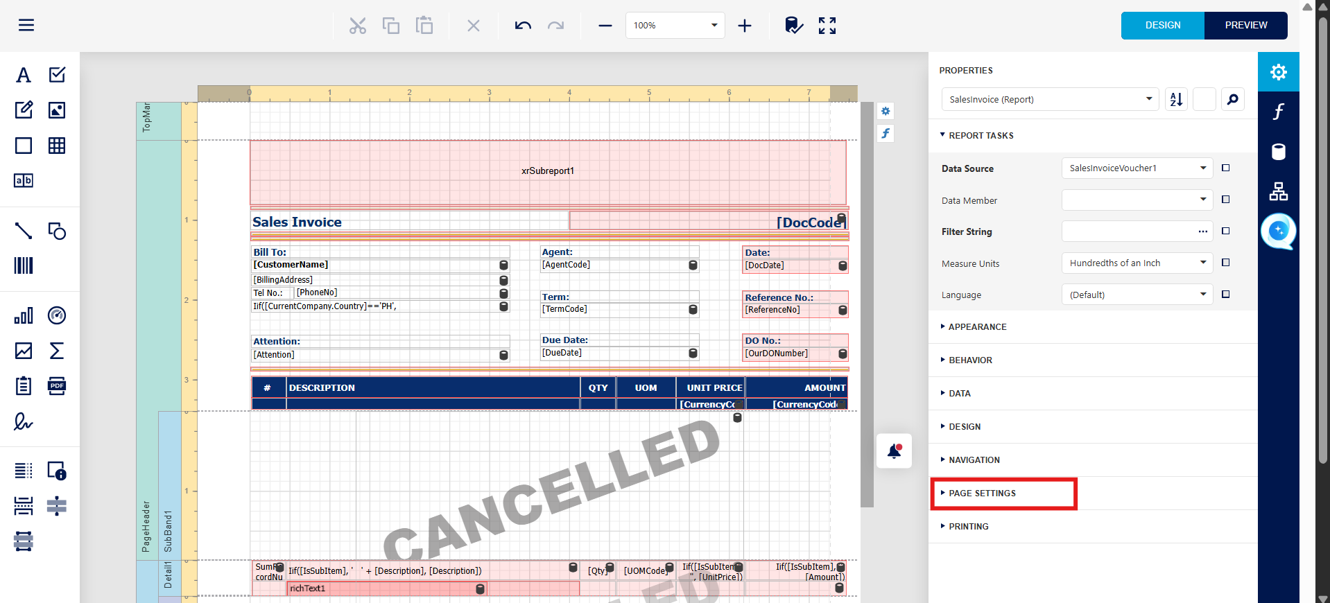 Expand PAGE SETTINGS