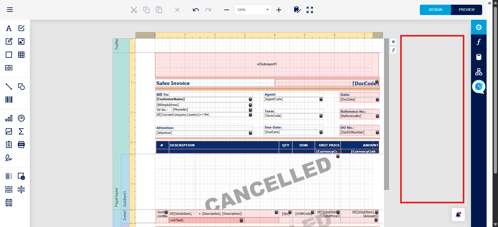 Click on the grey-colored section in designer