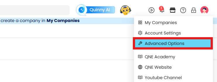 In System’s Header, click Account Option then choose ‘Advance Options’