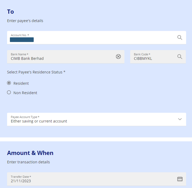 6) Key in payee’s details and scroll to bottom to click NEXT