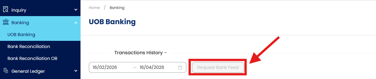 11) At UOB Banking Screen, can click Request Bank Feed and the transaction will update and appear once approved.