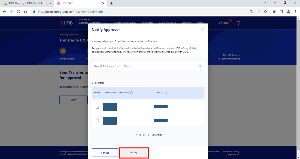 9) When click for Notify Approver, you can tick which recipient receive the notification and click for Notify