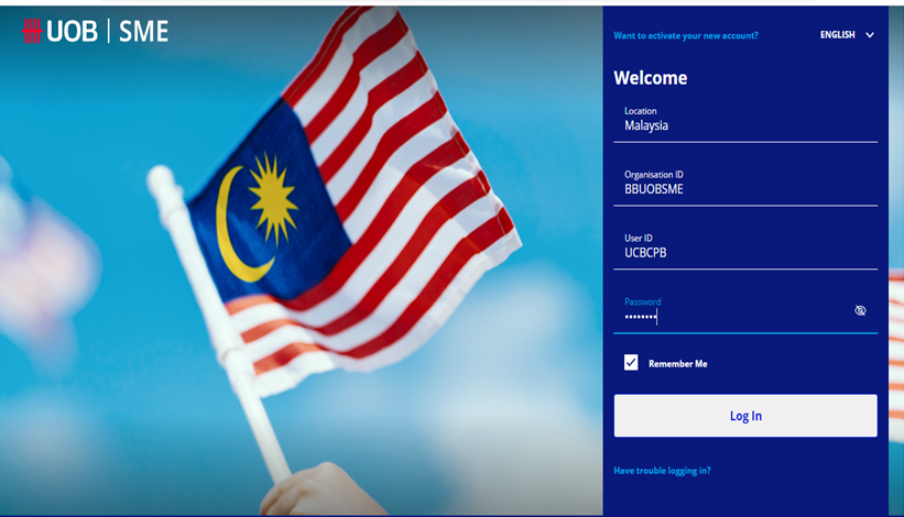 3) Will connect to UOB SME website > key in Organisation ID, user ID and password