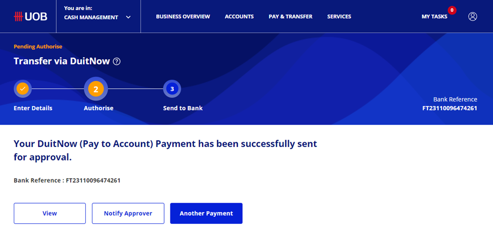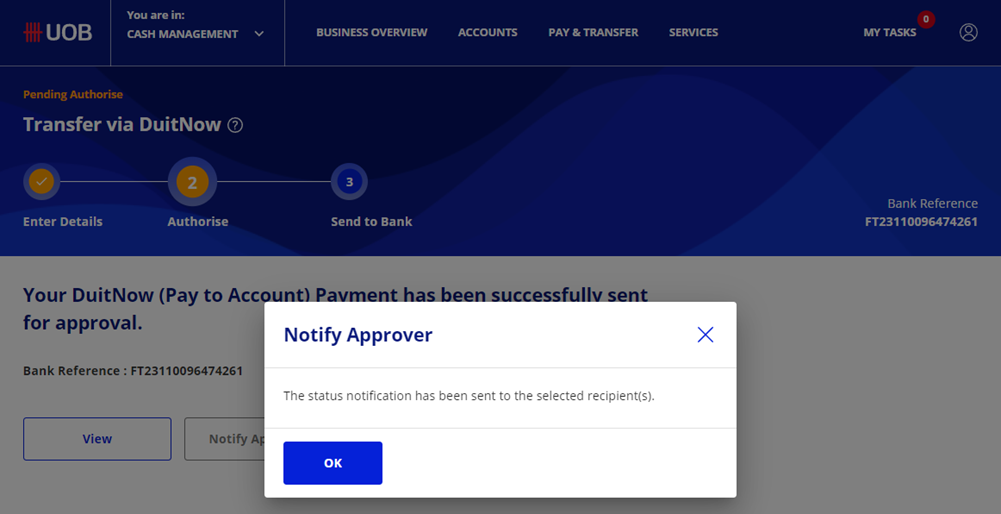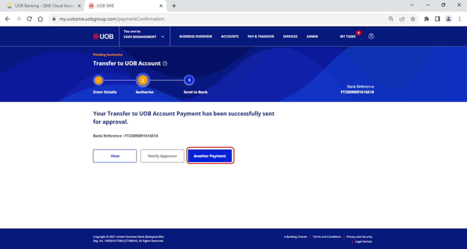 10) After click Notify will show like below, if want to perform another payment can click Another Payment