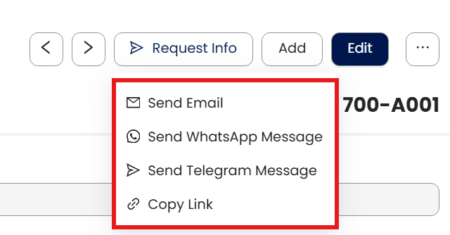 Open one Customer Details. Click the ‘Request Info’ button to select from the list of how the user wants to send the link for verification.