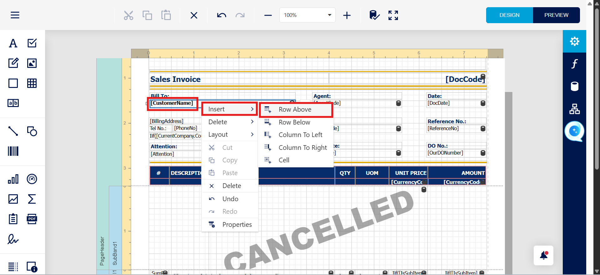 Step 3 - Right click on 'Customer name' field > then press 'Insert Row Above'