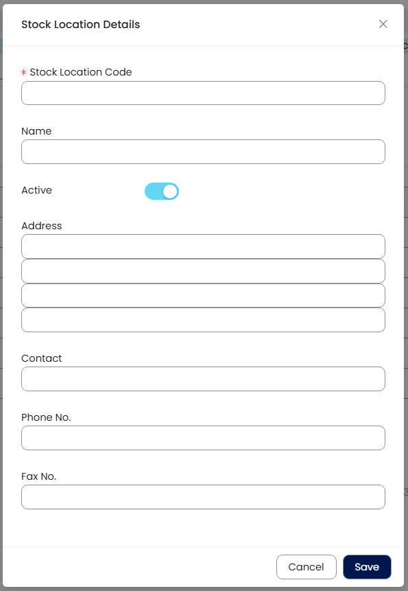 Stock Location Code - This is a compulsory field and should be a unique code.