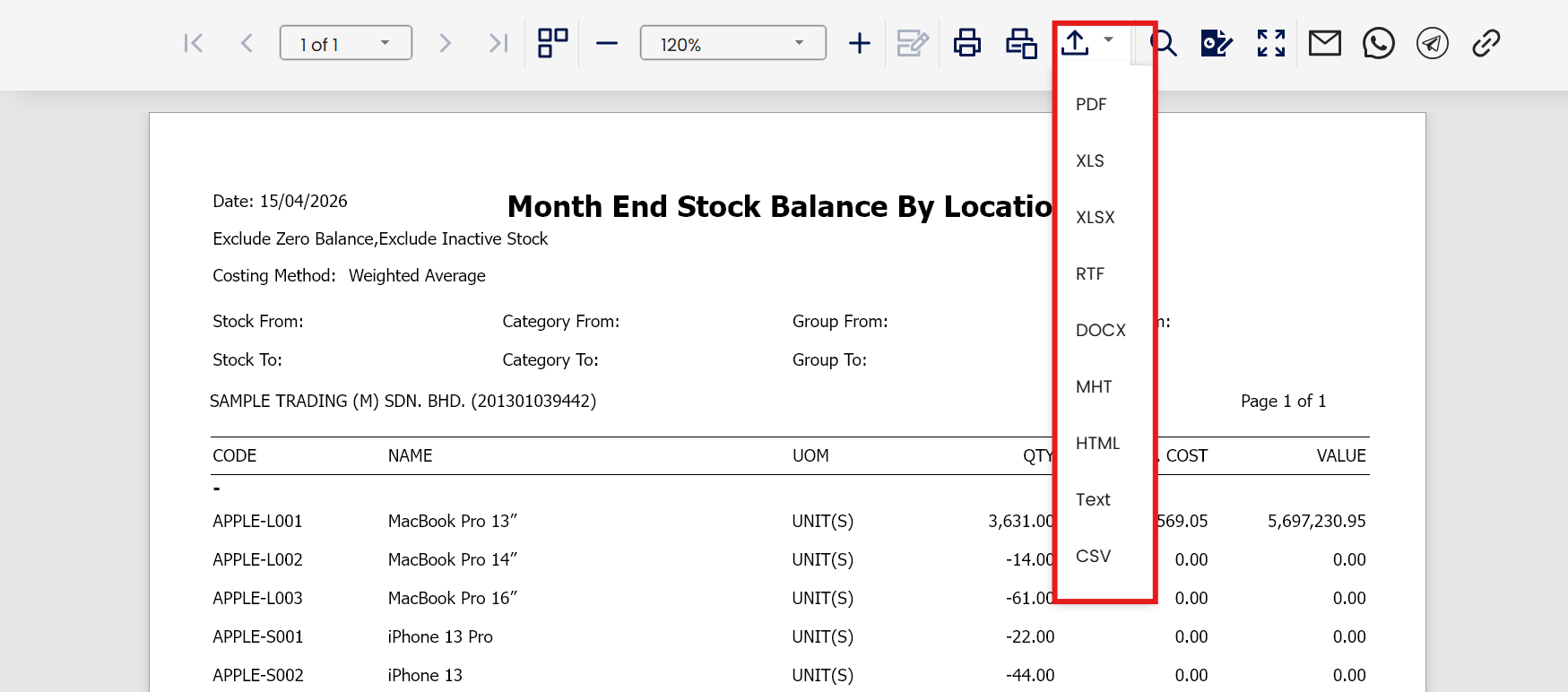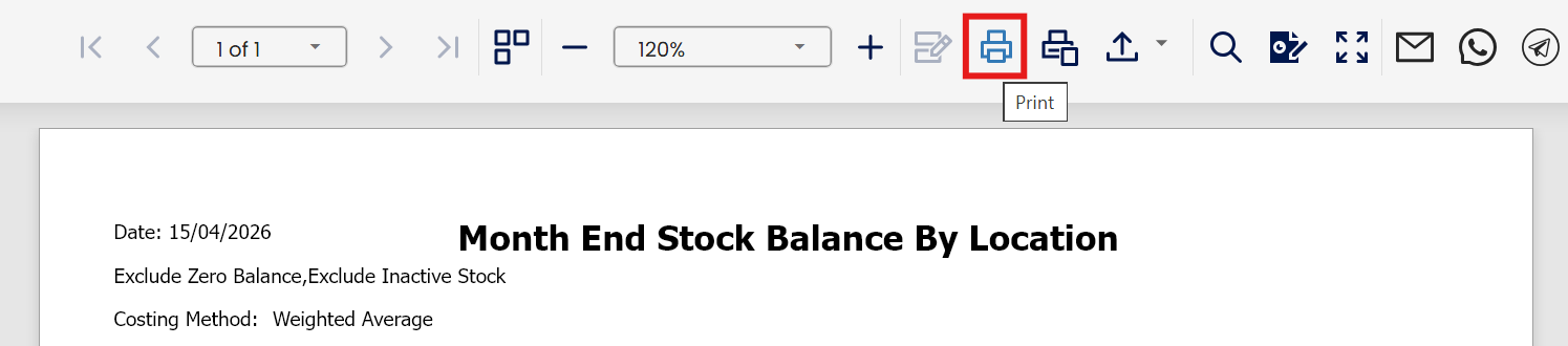 You can now view the generated Month End Stock Balance By Location Report.
