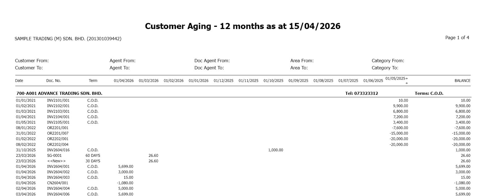 Many users have asked if the Customer Aging Report can display only the company name and balance amount without other details. Instead of modifying the aging report, users can achieve this by using the Note to Account Report, which provides the required information in a simplified format.