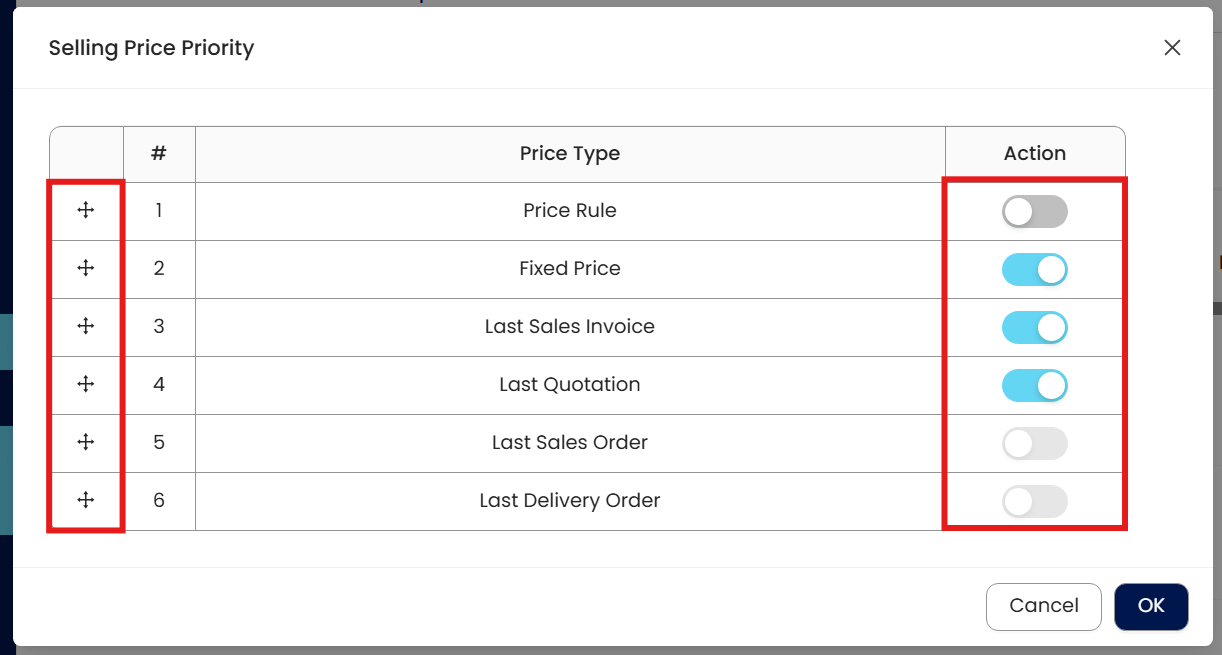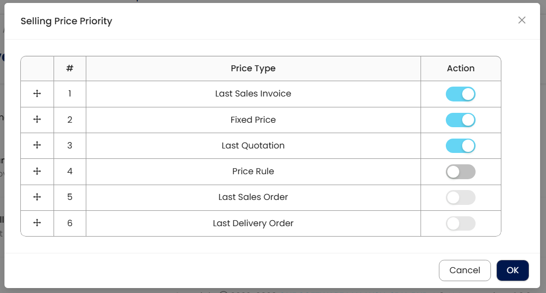 A company sells various products, some with fixed prices and others with fluctuating market prices. With this new feature, the user can set 'Selling Price Priority' to first check if a fixed price exists for a product. If no fixed price is available, the system will automatically check the last selling price and apply it accordingly. Similarly, in purchases, the 'Purchase Cost Priority' allows users to establish a sequence where the system first checks the fixed purchase cost, and if unavailable, it will select the last purchase price instead. This structured approach ensures accuracy and flexibility in pricing management.