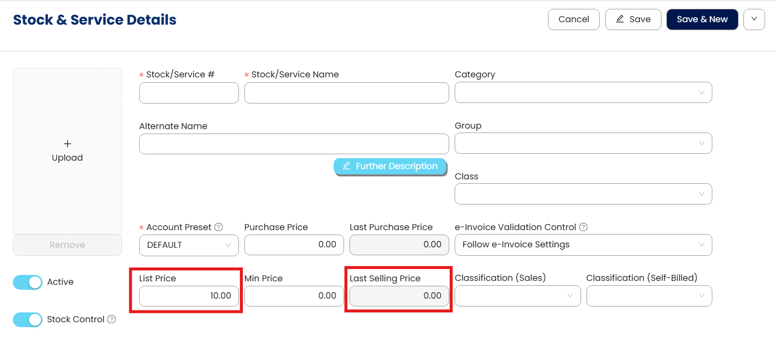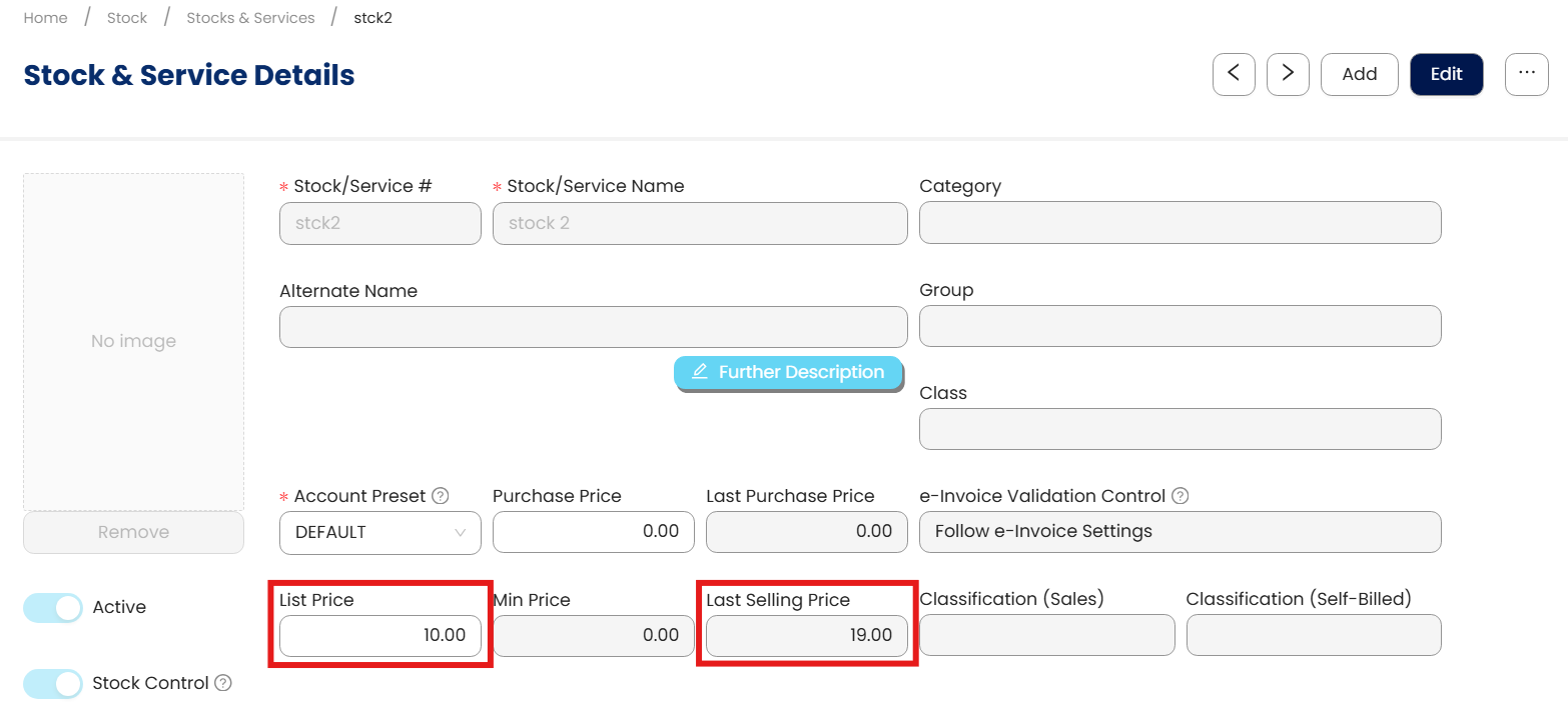 Here a new created stock item, which only have List Price (Fixed Price), and don't have Last Selling Price yet.