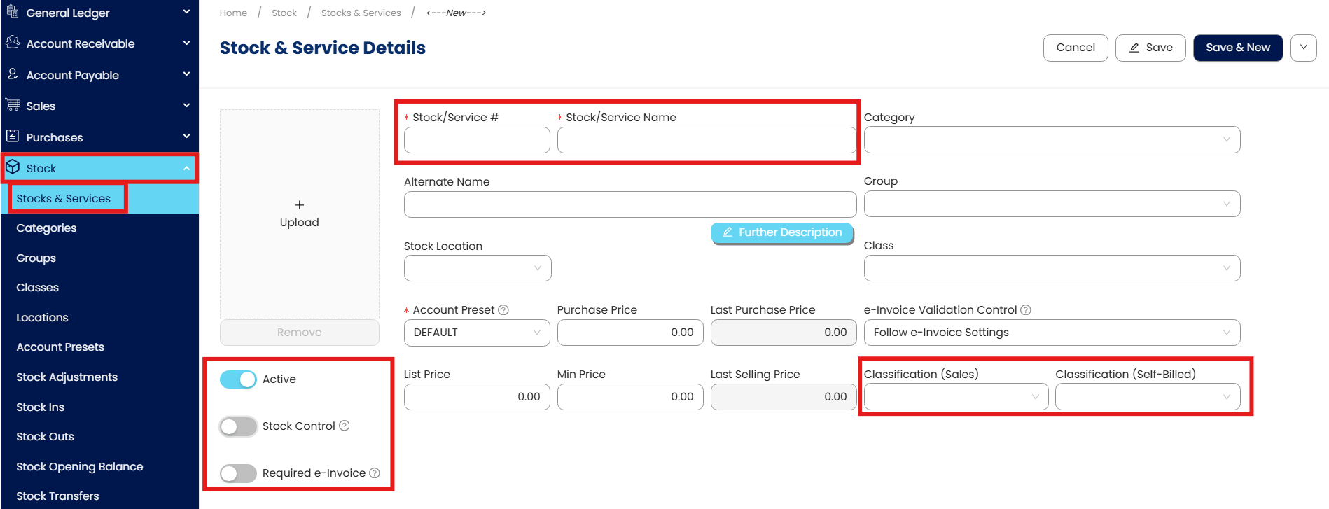 Create Stock Code as MISC and Stock name as Miscellaneous. Disable ‘Stock Control’. Define Classification as 022 and 036