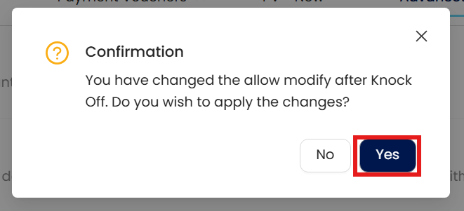 After enabling the toggle, a confirmation prompt will appear, asking whether you wish to apply the changes. Click “Yes” to confirm the modification.