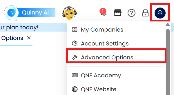 Alternatively, users may select Account Icon > Advanced Options
