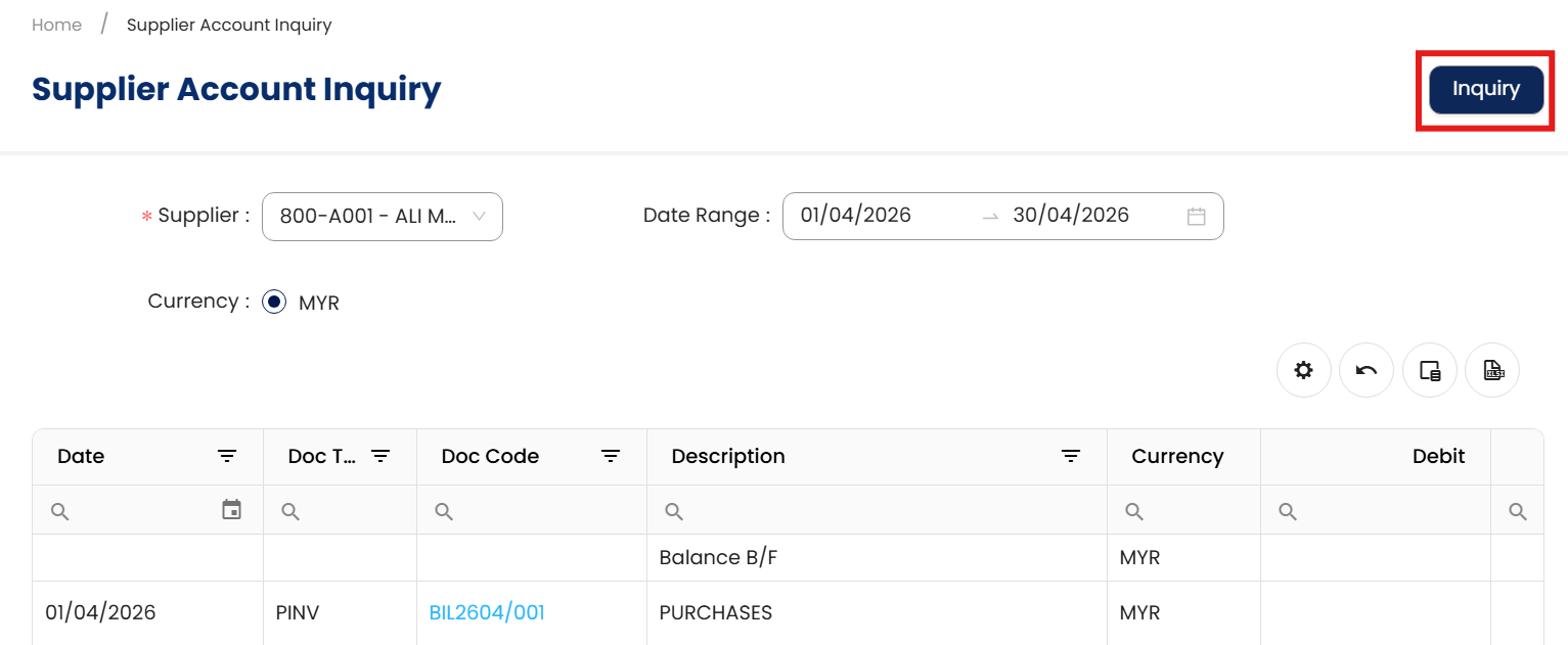 Using Supplier Inquiry enables users to work more efficiently, prevent overpayments or missed dues, and maintain clear, accurate records of supplier accounts.
