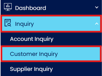 Navigate to the Inquiry module and select Customer Inquiry.