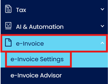 To do so, go to e-Invoice, then click e-Invoice Settings.