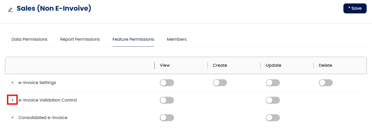 To achieve the role required for above, let’s focus on 2 e-Invoice permissions under Feature Permissions tab: