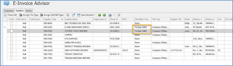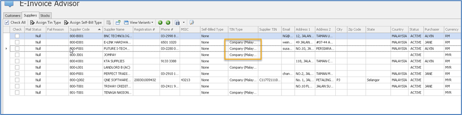 Using this function, users can quickly ensure all supplier records have the correct tax information before generating self-billed e-Invoices.