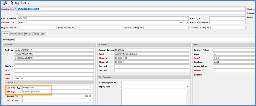 5. Check Supplier Maintenance > ‘Self-Billed Type’ & ‘TIN Type’ have been updated