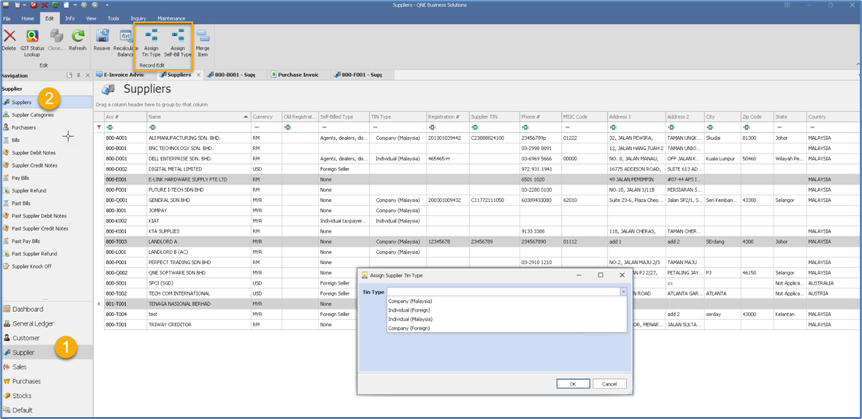 6. You can Assign ‘TIN Type’ and ‘Self-Billed Type’ from the Supplier List view as well