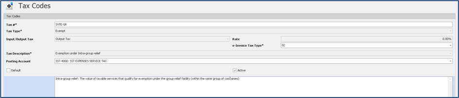 3. In Tax Codes, a new tax codes created for SVTE-GR