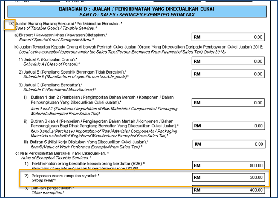 Intra-group relief: The value of taxable services that qualify for exemption under the group relief facility (within the same group of companies)