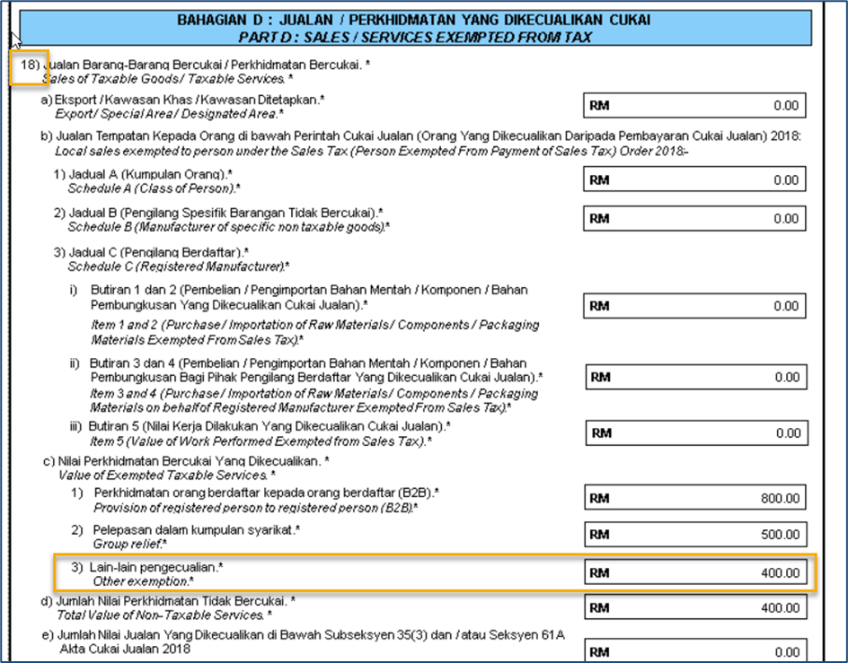Other exemptions: The value of taxable services granted exemption by the Minister pursuant to subsection 34(3)(a) of the Service Tax Act 2018