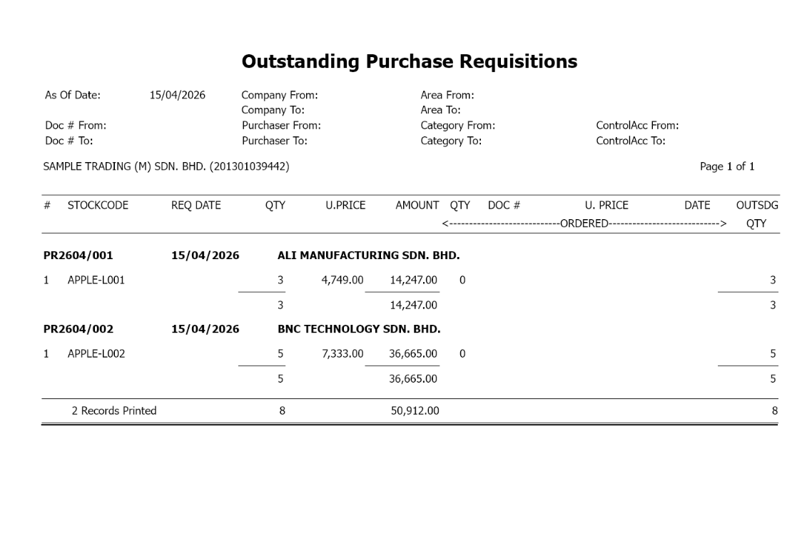 So, this report helps monitor incomplete or pending purchase requisitions, ensuring no requested items are forgotten or delayed.
