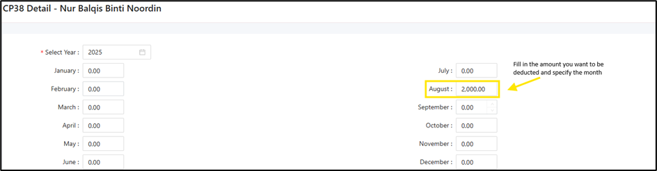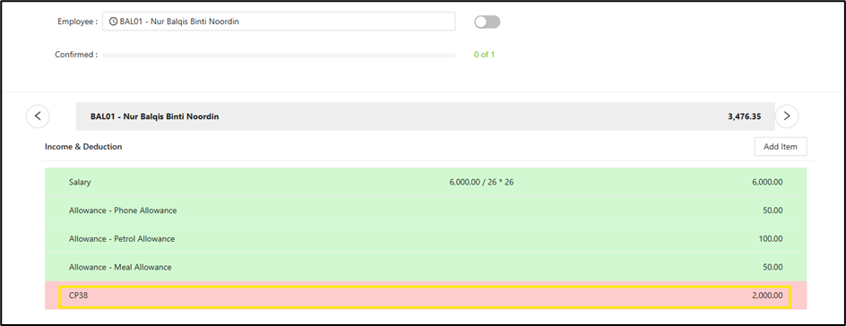 When you generate the payroll for that month, the system will automatically deduct the CP38 amount from the employee’s salary and display it in the PaySlip.