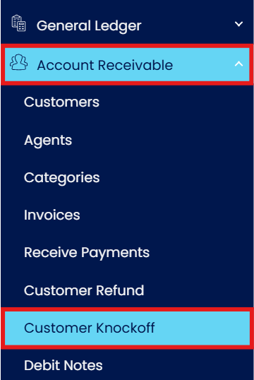 Go to Account Receivable > Select Customer Knock Off