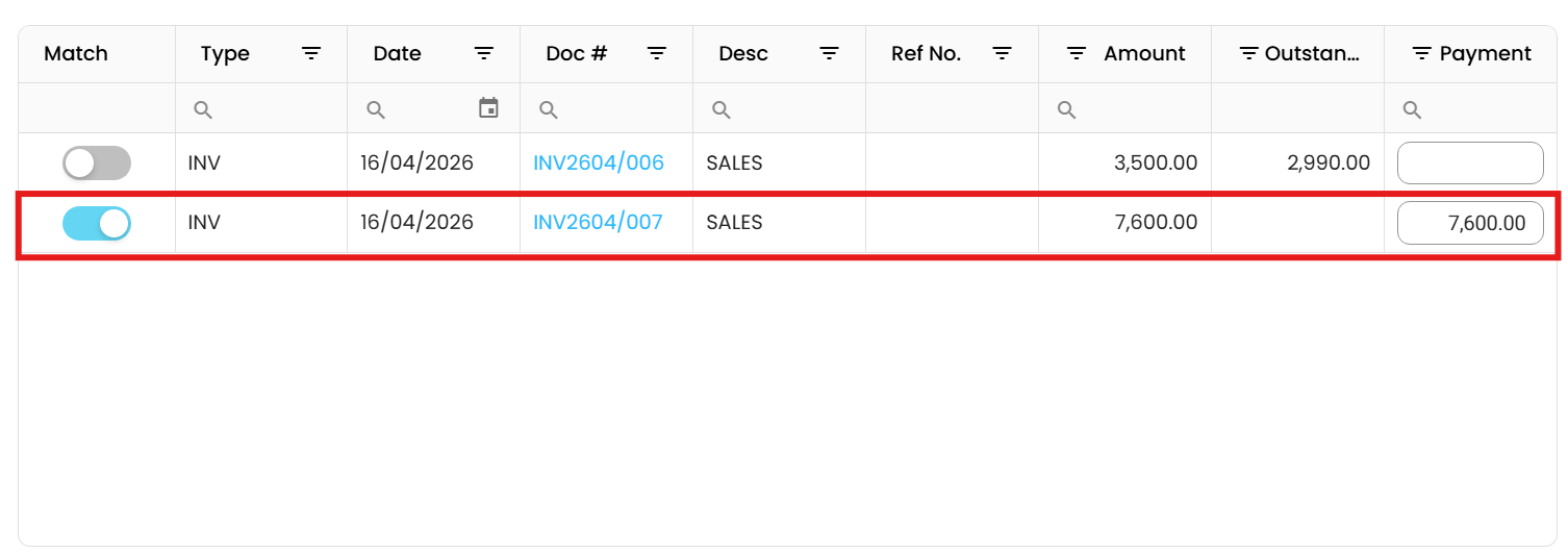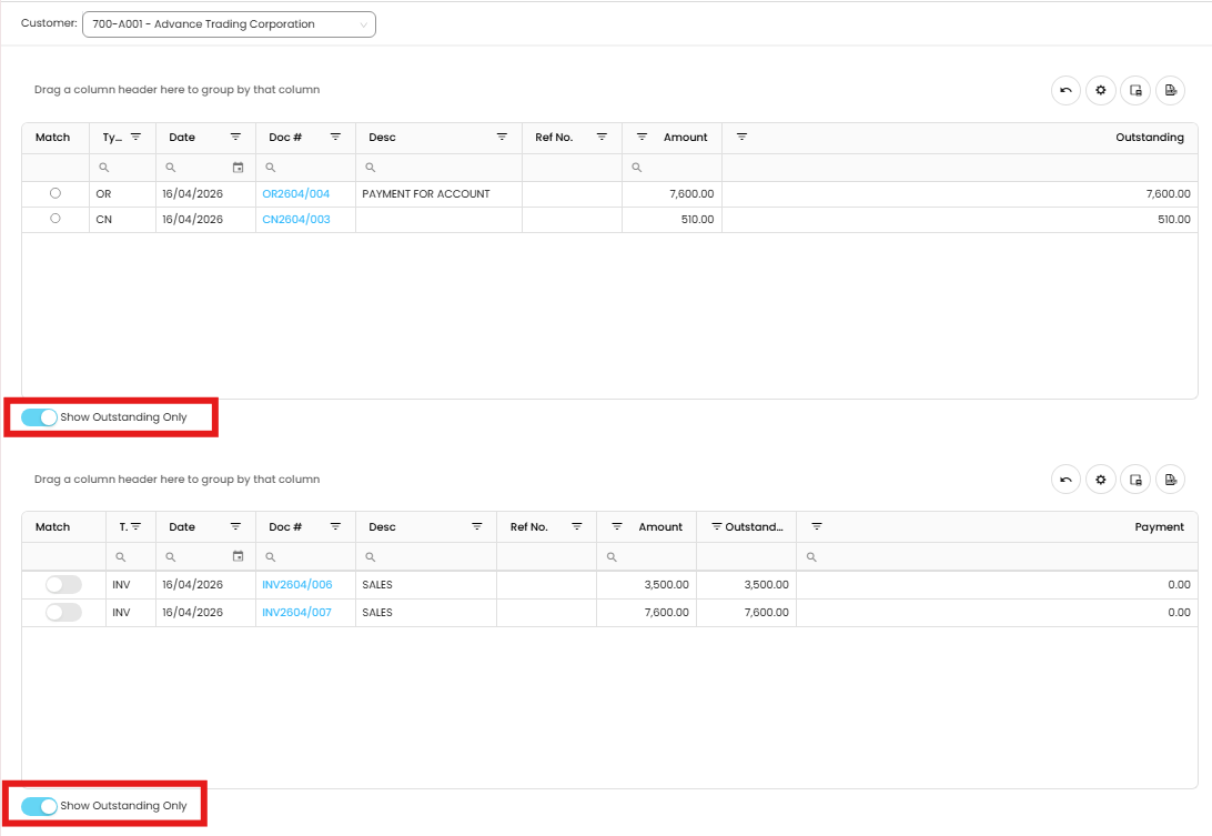 Note: Please ensure to toggle on the ‘Show Outstanding Only’